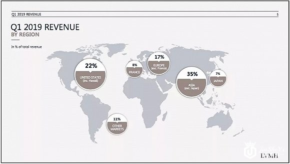 LVMH集团2019年一季度销售额各大区增幅