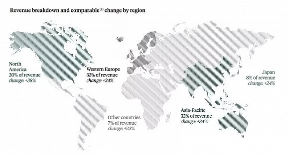 LVMH集团销售额各大区域分布