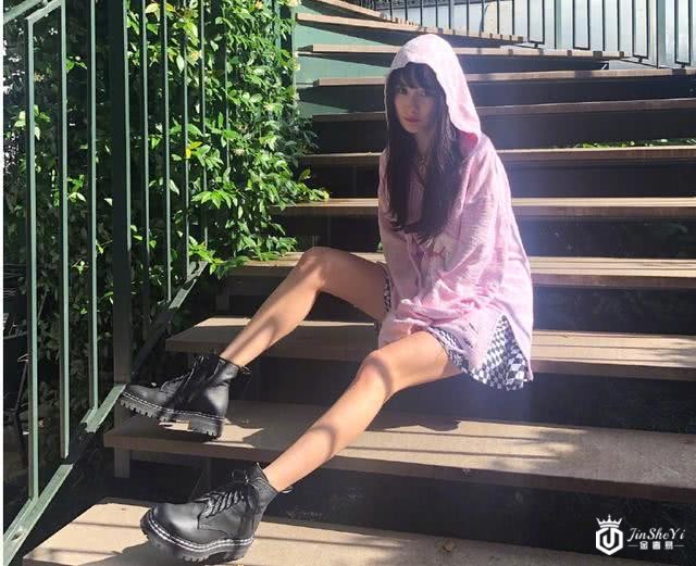 减龄感十足的粉色兜帽卫衣搭配超短裙,以及复古靴,让杨幂本就减龄感十足的面庞,看起来更加的少女,