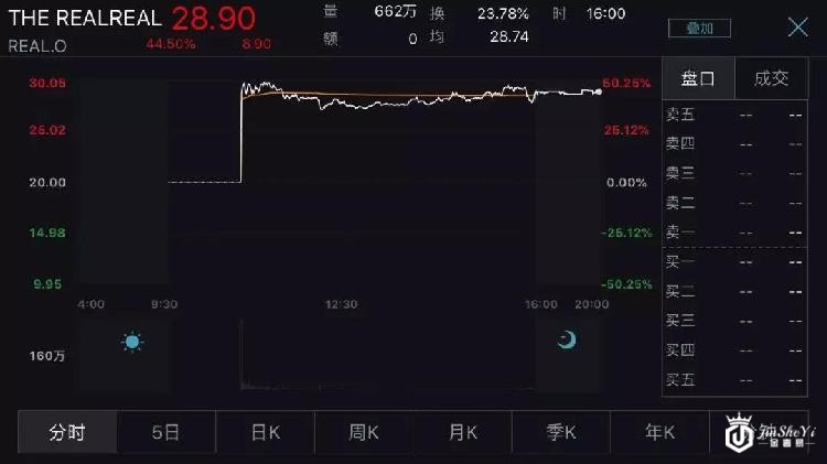 或许是基于这样的逻辑,美东时间周五(6月28日),二手奢侈品零售商The RealReal(NASDAQ: REAL,以下简称“RealReal”)登陆纳斯达克,开盘一分钟便暴涨49.1%;当日收涨44.5%,市值达到23.9亿美元。