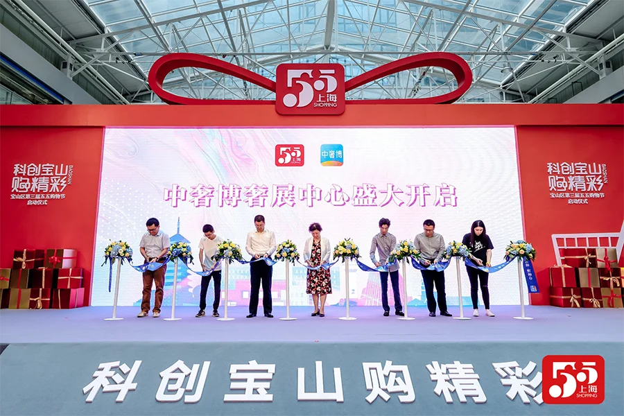 8月11日,宝山区第三届“五五购物节”在高境临港新业坊正式启动。启动仪式上,中奢博奢展中心负责人冯培康介绍了企业拟在宝山的发展战略。市商务委副主任刘敏、副区长翟磊、高境镇副镇长陈怿捷、妃鱼网络创始人&CEO黄世昌、字节跳动二手行业负责人丁帅、字节跳动服务商美奢负责人李雅雯、中奢博奢展中心总经理冯培康进行了中奢博剪彩仪式。