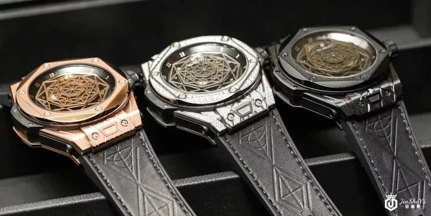 原本宇舶大爆炸系列中表款元素足够丰富,但看刺青则像是重新设计过的Big Bang腕表,用材也多样化,钛金、镶钻钛金、King Gold(宇舶自己的材料)和陶瓷,但尺寸的DNA没有改变,标准的45毫米,不同的是表壳和表盘。