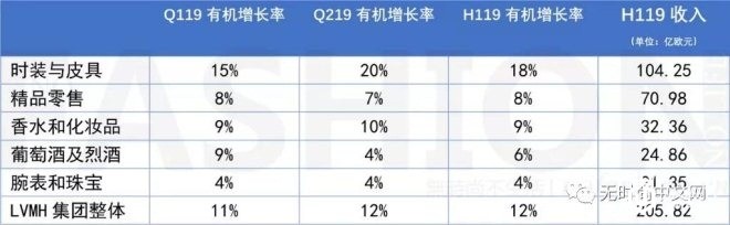 LVMH SE 路威酩的二季度收入达125亿欧元,优于市场预期的123亿欧元,12%的有机销售增长率略超一季度和去年同期的11%,而市场期望为10%。亚洲(撇除日本)增速达18%,较市场预测高出一个百分点;欧洲、日本和美国也各录得13%、11%和8%的增长,受惠于法国本土奢侈品销售在“黄背心运动”平息后重新抬头,欧洲增幅比一季度的7%显著扩大。