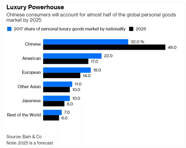 报告预计到2025年中国消费者将贡献全球奢侈品行业近一半的销售额