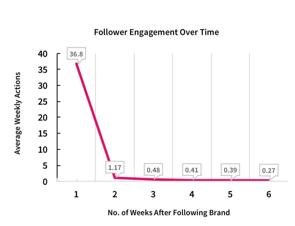 亮点二:新关用户大多数互动行为发生在关注品牌的前6周