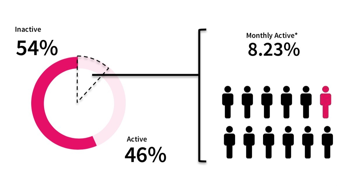 亮点一:54%的奢侈品官方微信用户处于非活跃状态