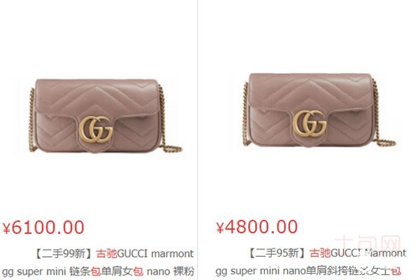 上图为古驰GUCCI同款99新和95新二手售卖价格对比