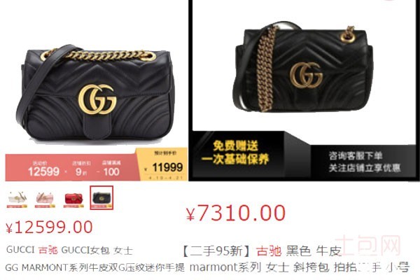 图为一手古驰包包和二手古驰包包价格对比