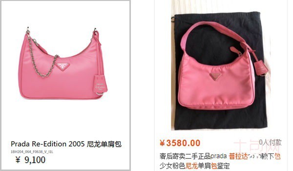 上图为奢侈品普拉达尼龙包包一手二手价格对比