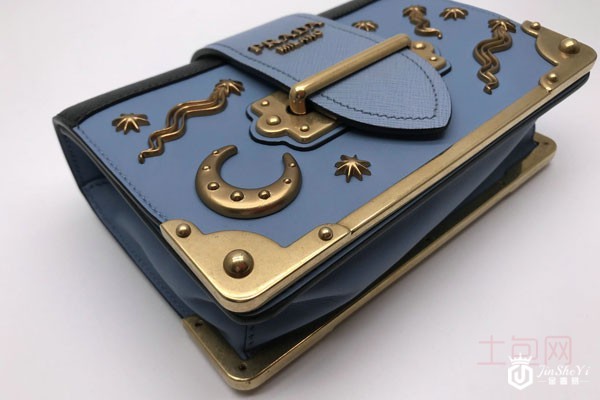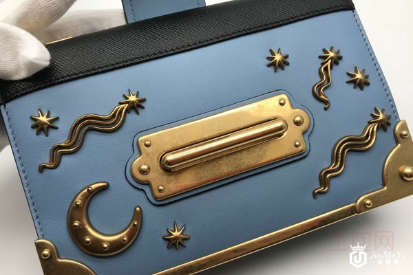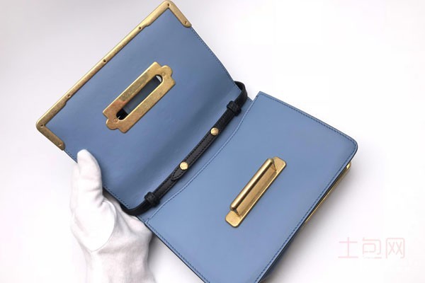 上图为蓝色普拉达星月盒子包开扣状态展示