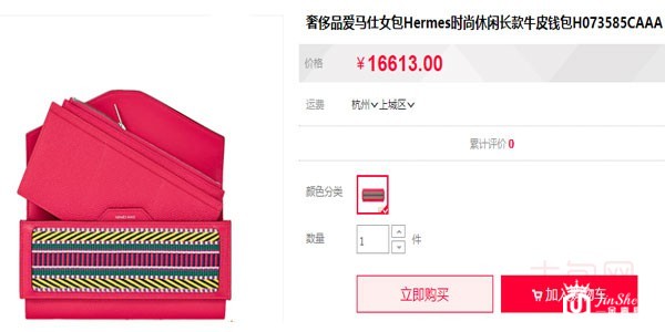 上图为爱马仕女士牛皮钱包H073585CAAADE的官方价格