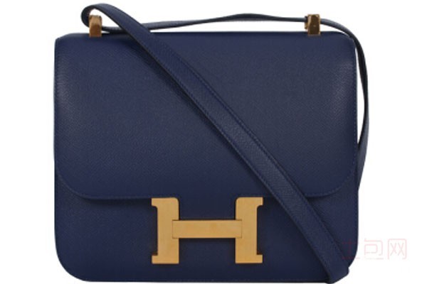 上图为爱马仕深蓝色Epsom皮金扣单肩斜挎包