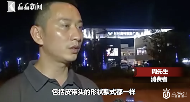 消费者周先生:“皮带的材质纹路,包括皮带头的形状款式都一样,价格呢,价格也一样,但唯一不一样的是,它LOGO的位置不一样,官网的LOGO位置是横着的,而我买的皮带(LOGO是)竖着的。所以我很怀疑,这条皮带是有问题的。”