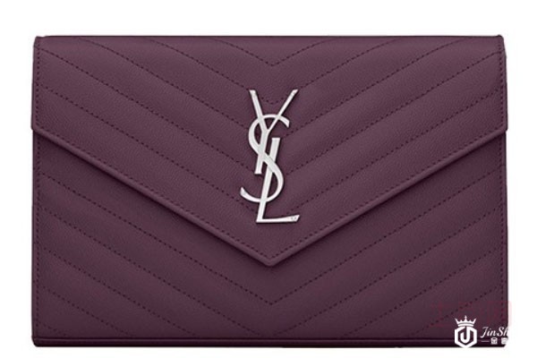 上图为圣罗兰YSL信封包牛皮单肩包紫色