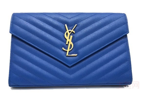 上图为圣罗兰YSL蓝色信封包牛皮单肩包