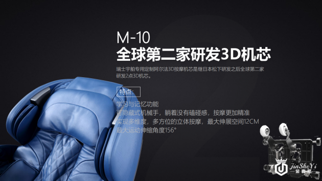 HUBLOT宇舶的3D机械手是继日本松下成功研发3D之后,世界第二家研发出3D机械手。瑞士宇舶专用定制阿尔法3D按摩机芯真正实现多维度,多方位的立体按摩效果,数据显示最大伸展空间12CM,是一台真3D机械手。