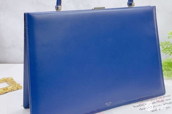 上图为Celine赛琳CLASP中号蓝色女士手提包侧面