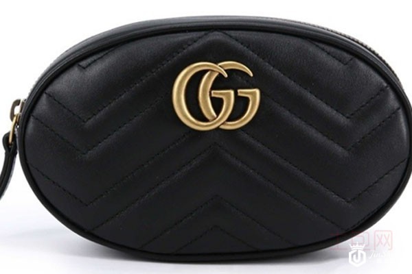 上图为古驰黑色牛皮腰包型号 476434 DSVRT 1000