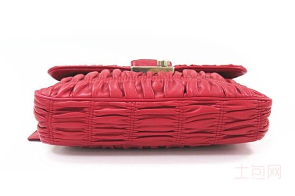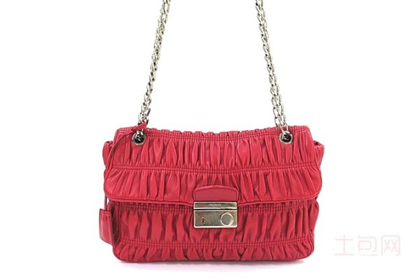 上图为普拉达褶皱小羊皮单肩链条包包外观展示