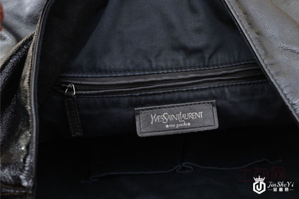 上图为YSL圣罗兰黑色漆皮手提包防水布内衬