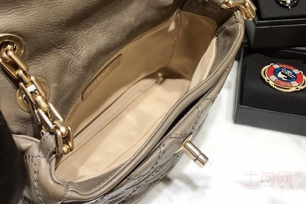上图为香奈儿/Chanel 油腊皮复古女士链条包内衬详情