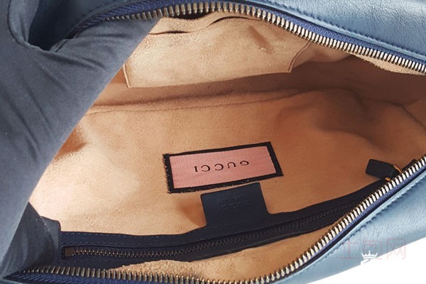 上图为古驰女士蓝色涂鸦款相机包443499内衬情况