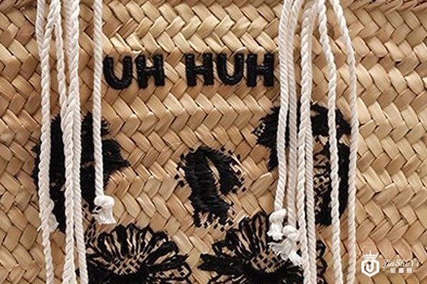 上图为CELINE赛琳女士草编单肩手提包带刺绣