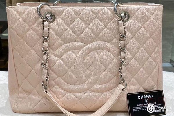 上图为香奈儿Chanel 女包 GST 樱花粉荔枝牛皮单肩包经典款手提包33*24