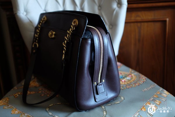 上图为95新蔻驰暗夜紫罗兰Parker Carryall链条包(侧面)