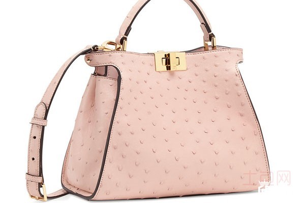 上图为芬迪女包手提包2个隔层粉色表面颗粒感旋扣金属