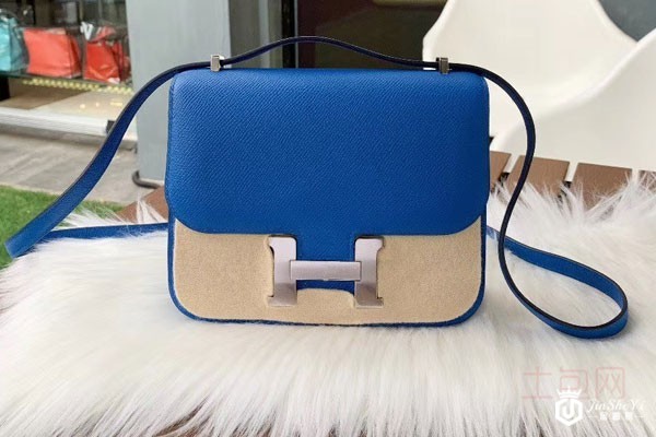 上图为爱马仕坦桑尼亚蓝constance19包包