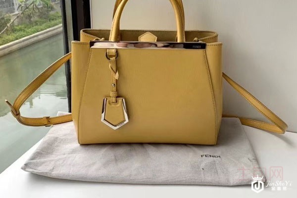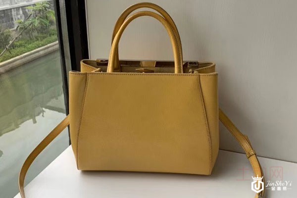 上图为奢侈品芬迪黄色皮革2Jours包包