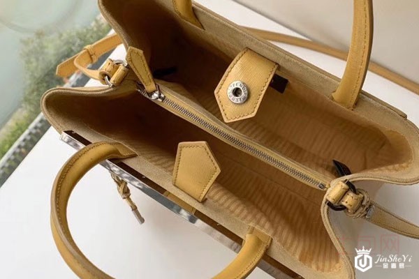 上图为奢侈品芬迪黄色皮革2Jours包包内部