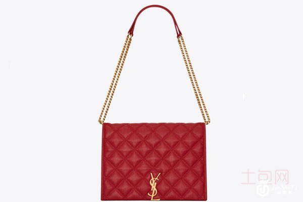 上图为圣罗兰BECKY 小号绗缝小羊皮链条包红色