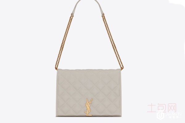 上图为圣罗兰BECKY 小号绗缝小羊皮链条包白色