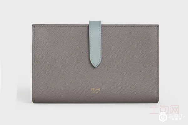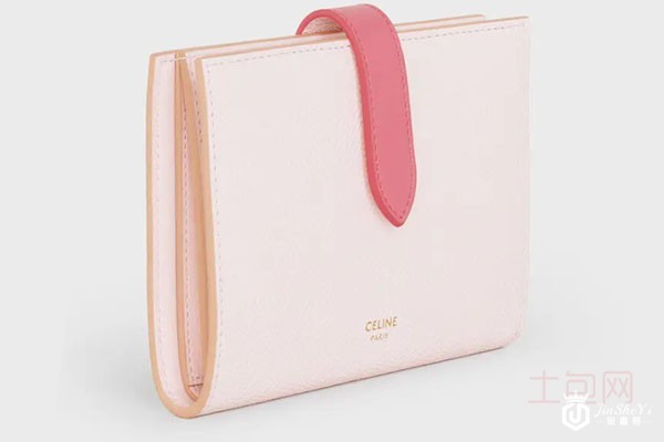 上图为赛琳中号双色粒面牛皮革饰带钱包
