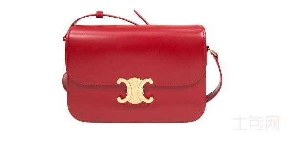 上图为赛琳/CELINE 女款 triomphe小号红色亮泽小牛皮单肩包