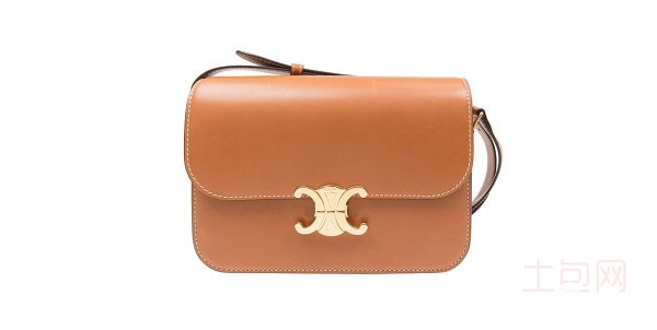 上图为赛琳/CELINE 女款 triomphe中号黄褐色亮泽小牛皮单肩包