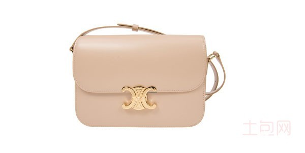 上图为赛琳/CELINE 女款 triomphe小号裸色亮泽小牛皮单肩包/斜挎包