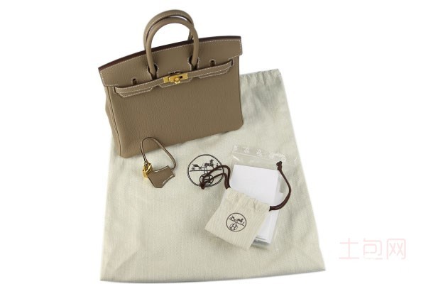 上图为Hermes 爱马仕BIRKIN25系列灰色牛皮女款手提包
