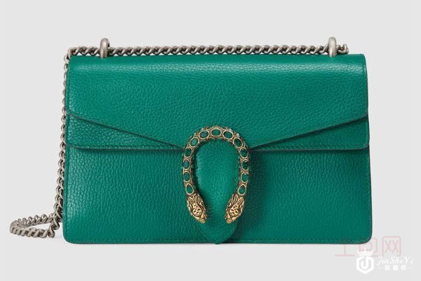 上图为Dionysus系列皮革肩背包 祖母皮革绿