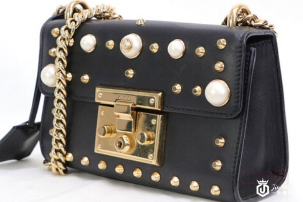 上图为古驰padlock黑色珍珠铆钉链条包实拍