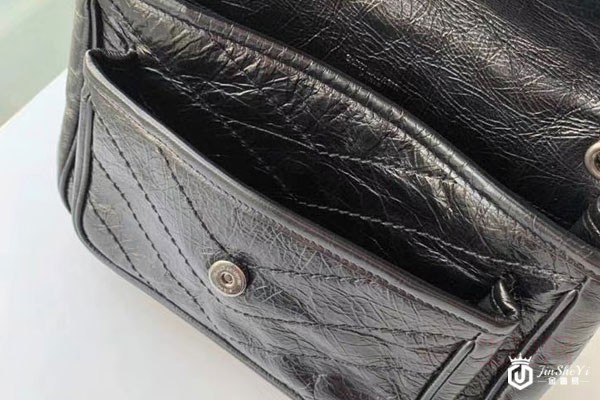 上图为奢侈品圣罗兰黑色牛皮迷你复古皱褶真皮NIKI 包包内部展示