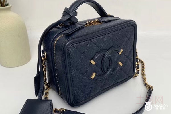 图为香奈儿军海蓝牛皮单肩斜挎包
