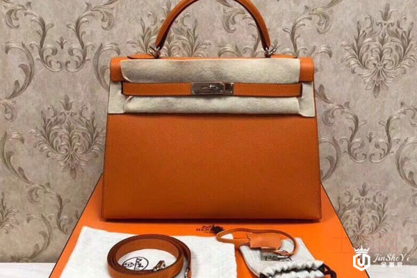 上图为橙色爱马仕Kelly包包及附件展示