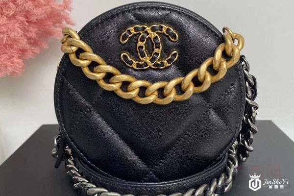 上图为香奈儿黑色小羊皮菱形纹圆饼包回收实拍
