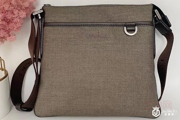 上图为宝格丽灰色布帆男士单肩斜挎包回收实拍