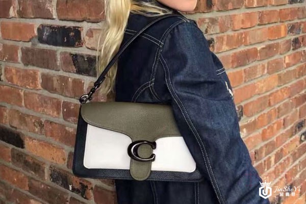 图为模特肩挎蔻驰Tabby系列拼接女士手提单肩包