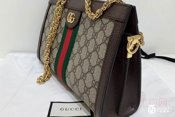 上图为古驰老花ophidia小号GG金链单肩包包局部细节展示