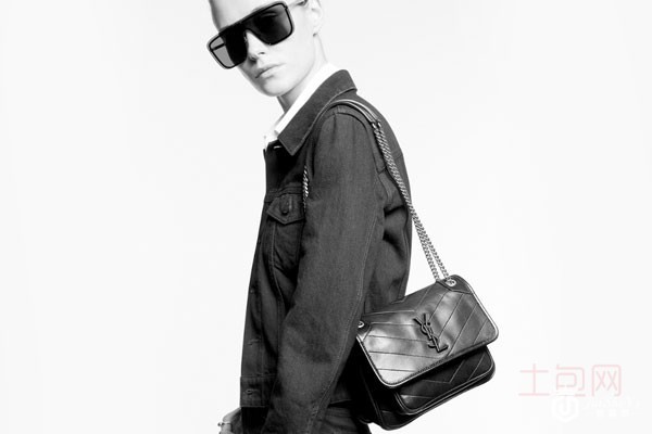 图为图为圣罗兰niki迷你复古邮差包包侧面展示